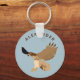 Esta cadena de claves presenta un ilustracion de un halcón de cola roja en vuelo contra un fondo azul claro y tu propio nombre o mensaje corto. Encuentre productos y regalos temáticos de halcones coordinados en la colección Hawk y Blackbird de Asterisk Designs.