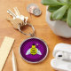 Esta divertida cadena de teclas presenta un lindo mago de abejas amarillas con rayas negras. El Bee tiene grandes ojos negros brillantes y lindas antenas negras. Las alas de la abeja están dobladas para que se vean como una capa. La abeja lleva un alto gorra negro con estrellas naranjas y moradas. Además, está sosteniendo una varita mágica con forma de estrella y con muchos colores diferentes. El fondo es un patrón de rayas moradas y negras.