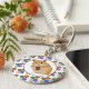 Esta colorida cadena de llaves de Pascua, tirada por la cremallera, presenta un diseño central de mi retrato de un tierno hámster dorado aferrándose a un huevo de Pascua de chocolate con coloridos huevos con estampado en el fondo. Un encantador regalo para enviar a amigos y familiares.