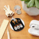 Trois petits fantômes cosy sirotent leur café sous un grand nœud orange à têtes de mort, entourés de chauves-souris. Une illustration noir & orange à la fois mignonne et “spooky cute”, parfaite pour Halloween : mugs, vêtements, déco et cadeaux.