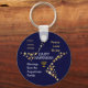Elegante cadena de claves HAPPY HANUKKAH personalizada en azul y oro para desear a su familia y amigos un Hanukkah feliz. El diseño muestra un texto que dice HAPPY HANUKKAH en la tipografía blanca en el centro, con PEACE, LOVE & JOY en la tipografía de color oro en una esquina, y también escrito en HEBREW en la otra esquina. Esto se sitúa sobre un fondo de estrellas de color dorado contra el azul de medianoche. El texto del marcador de posición es personalizable, por lo que puede crear su propio saludo y agregar su(s) nombre(s). Ideal para los amantes de las medias o para los regalos. En la colección HANUKKAH by Berean Designs se ofrecen otras tarjetas Hanukkah, decoración y regalos.