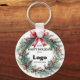 Custom "Happy Holidays" keychain for clients personalized with your business logo, the year, a festive wreath, and an elegant red bow. Company promotional supplies for the Holidays, you can order in bulk for your employees or as branding and marketing supplies to promote your store to customers.