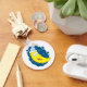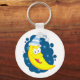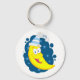 Una cara feliz de luna amarilla con un gorra azul y blanco. Este diseño parece realmente efectivo en esta cadena de claves