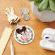 Decora Harajuku chica Yuriko con un borde redondo de flores vintage. El color de fondo es el personalizable.