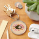 Esta divertida cadena de teclas muestra un lindo personalizado de un pequeño erizo picante marrón curvado en una bola con aspecto de sueño. El Hedgehog está rodeado de flores de bonito. El erizo es marrón con una cara crema y las flores son rojas, naranjas y rosas.