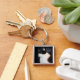 Keychain de personalizable con fotografía de gato de Tuxedo. Las palabras se pueden eliminar o cambiar. Hecho en honor de la Semana Nacional del Mascota (1-7 de mayo).