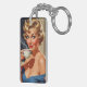 Llavero Hermosa mujer retro con una taza de café