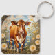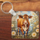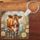Llavero Hermosa vaca Jersey en el campo de la margarita
