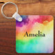 Cadena de teclas con fondo de acuarela con colores del arcoiris.