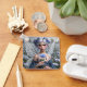 Un hermoso hada de cabello azul con alas plateadas con un vestido azul bonito y joyas de zafiro encierra una sola tostadora mientras está de pie en un campo de maestrías. El texto puede cambiarse o eliminarse fácilmente si desea que la imagen no tenga texto.