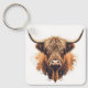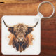 Highland Coo Keyring- single highland cow- face on with horns and white background.