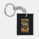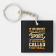La cadena de hockey versus fútbol presenta texto de palos amarillos y dorados y dos de hockey. Este keychain jugador de hockey lee: ¡Si el hockey sobre hielo fuera un deporte fácil, se llamaría fútbol!
