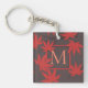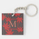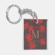 Elegante cadena de teclas monocroma en rojo y gris con elegante arte de hojas de arce.