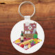 Una escena de picnic con comida y una canasta sobre una alfombra. Este diseño parece realmente efectivo en esta cadena de claves