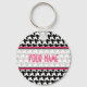 Una cadena de teclas con fondo de una cabina negra. Recorte rosado y texto. Personalice su nombre en la sección central.