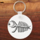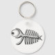 Clásica Keychain botón con la graciosa imagen de un hueso de pescado con aspecto puntiagudo y boca abierta amplia.