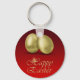 Ilustracion glamuroso con 2 huevos de pascua dorados sobre un fondo rojo.