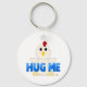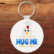 Esta linda gallina blanca y huggable de estilo anime tiene el dicho "Abrazo" escrito en texto azul.