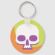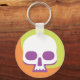Un icono de un cráneo en un fondo verde y naranja. Este diseño parece realmente efectivo en esta cadena de claves
