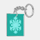 Un delicado patrón de copos de nieve de encía sobre un fondo sólido con una textura estriada tejida con Ikat - copo de nieve de agua ligera sobre un fondo turquesa profundo / pavo real