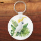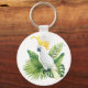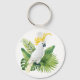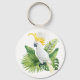 & on the tropical branches with leaves, white cockatoo and tropical leaves on a white background