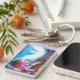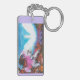 Llavero Ilustracion acuarela Niño monta leona blanca