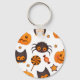 Patrón de halloween super lindo. En este ilustracion se pueden ver calabazas, arañas, búhos, estrellas y dulces. El esquema de color de este diseño de halloween es naranja, negro y blanco.