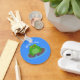 Esta adorable y feliz rana verde sentada en una almohadilla de lirio morado es brillante y adorable. Mucha diversión anfibia dibujada al estilo personalizado feliz.