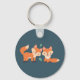 Una cadena de teclas con un ilustracion gráfico de 2 zorros naranjas que parecen lindos y felices. Fondo verde oscuro.