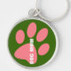 Para una madre de perro o para cualquiera que quiera reclamar su territorio, deje su marca con este diseño original, un anillo de claves con la huella de una pata rosa. La simple huella rosa, una pata de perro, descansa sobre un fondo verde pasto. El texto dice "DOG MOM", pero puede cambiarse al nombre de su mejor amigo, o eliminarse si lo prefiere. El color de fondo puede cambiarse para adaptarse al territorio.