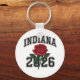 This design serves as a powerful commemorative piece, featuring a bold collegiate "INDIANA" arc and the year 2026 centered around a timeless red rose. The varsity-style typography and traditional floral art create a balanced look that celebrates both state pride and significant milestones.