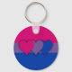 Keychain de botón básico con bandera de orgullo bisexual con rayas rosas, violetas y azules, diseño de patrones rayados con diseño de corazones