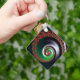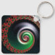 Este trabajo presenta un patrón fractal complejo y giratorio con una estructura espiral que parece extenderse infinitamente hacia adentro. Los colores primarios son rojos vivos y verde exuberante, contrastando con un fondo profundo y oscuro. A lo largo del camino de la espiral, se repiten formas fractales intrincadas y más pequeñas, lo que crea una sensación de profundidad y movimiento. Los elementos fractales rojos se asemejan a las formas orgánicas, casi como flores florecientes o hojas curvadas. Los tonos verdes pasan gradualmente a los blancos plateados más cerca del centro, añadiendo un efecto luminoso. En general, la imagen evoca una sensación de complejidad infinita y energía dinámica.