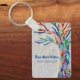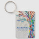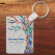 Esta cadena de claves decorativa cuenta con un árbol de la vida de mosaico de color arcoiris sobre un fondo gris pálido. Personalizable fácil. Diseño original de mosaico © Michele Davies