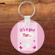 Es un chica. Una invitación chica recién nacido de color rosa. Este diseño parece realmente efectivo en esta cadena de claves