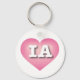 Esta cadena de claves presenta un corazón tranquilo, fresco y recogido de color rosa con un centro blanco lavado que contiene las letras negrita, blanca y funda superior IA, la abreviatura oficial de Iowa, el estado ocular halcón.