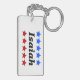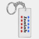 Cadena de llaves con el nombre de Isaiah, decorada con estrellas rojas y azules.