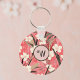 This lovely monogrammed keychain features a Japanese style floral print of dusty pink, light peach, garnet red, creamy white, and brown. Your monogram initial appears in a stylish typeface against a circle of peachy pink, bordered in black.
