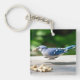Llavero Jay azul recibiendo un maní