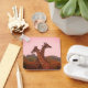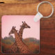 Llavero jirafas paradas en árboles mopani con cielo rosa
