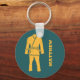 Crea un regalo personalizado que es perfecto para los estudiantes e instructores brasileños de Jiu Jitsu o BJJ. Este llavero presenta un ilustracion de un gi BJJ o uniforme de color amarillo dorado contra un fondo de color verde azulado. Está listo para ser personalizado con un nombre que coincida con las letras amarillas al lado del gráfico.