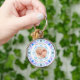 Bonitos suaves pasteles Navidades Personalizados Foto Ring de la llave ornamento de la imagen. Navidades de Personalizados azules y rosados de Jolly y Pasteles festivos Foto de la cadena de claves de decoración de Navidades redondeados por cuadros. Un suave y colorido adorno de baudible circular para tu ropa de temática azul y rosa multicolor. El diseño del cuadro es un patrón de abstracción geométrica alegre que toma los diseños tradicionales de bloques de colores festivos. En tonos pastel de azul invernal y rosa bonito para un Winter Wonderland. Personalízalo reemplazando la foto por la tuya propia, para un regalo temprano para la familia y amigos para celebrar a los Navidades. Edite el texto gris de arriba y abajo para su propio saludo. El texto predeterminado en la parte superior dice "¡Feliz Navidad, abuela!", y el texto predeterminado en la parte inferior dice "¡Nombra bebé en la primera Navidad 20xx!" La foto del stock muestra a un bebé durmiendo. Aprecie sus recuerdos Yuletide. Un gran regalo para los nuevos padres, madres, abuelos y abuelas. Un regalo de bienvenida asequible, para celebraciones familiares o primeras Navidades.