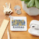 Keychain con un colorido ilustracion de la gente, lugares y cosas que hacen de Kansas un estado especial!