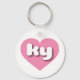 Este anillo de claves presenta un vibrante corazón rosado que contiene las letras negrita, blanca, redondeadas y fundas inferiores ky, una abreviatura juguetona para el estado de Kentucky, el estado de bluegrass.