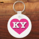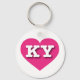 Esta cadena de claves presenta un vibrante corazón rosado caliente que contiene las letras negrita, blanca y alta del funda KY, la abreviatura oficial de Kentucky, el estado de bluegrass.