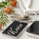 Ein sehr schöner edler personalisierter Schlüsselanhänger im whitegold Lettering Look auf schwarz für Kevin.