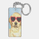 ¡Es la vida de un perro! Estar fresco y celebrar los días de perro del verano con este lindo Labrador de color amarillo llevando gafas de sol y relajándose con una bebida.