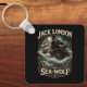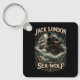 A dramatic nautical illustration of a hardened sea captain steering through storm-tossed waves, inspired by Jack London’s classic tale of survival and the wild sea.