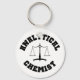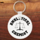 Analítico químico - cadena de teclas blanca con letras de estilo colegiado negro y gráfico de balance antiguo.