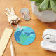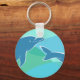 El diseño de la cadena de claves es de delfines gráficos sobre un fondo azul y verde.